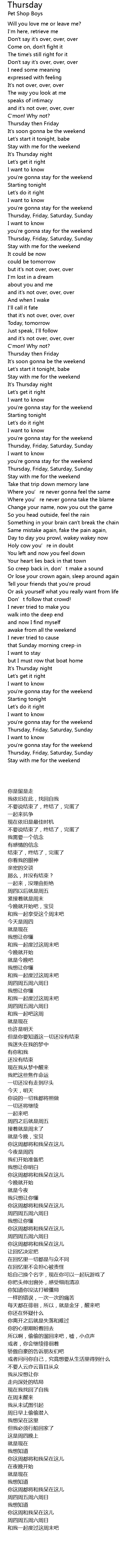 | 歌曲 | Thursday |