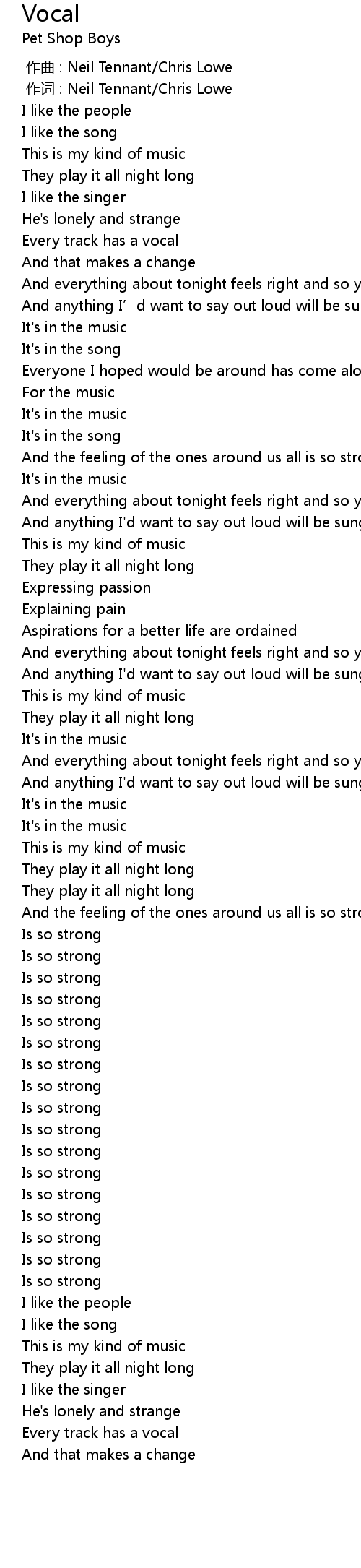 | [00:01.00] | zuò cí : Neil Tennant Chris Lowe |