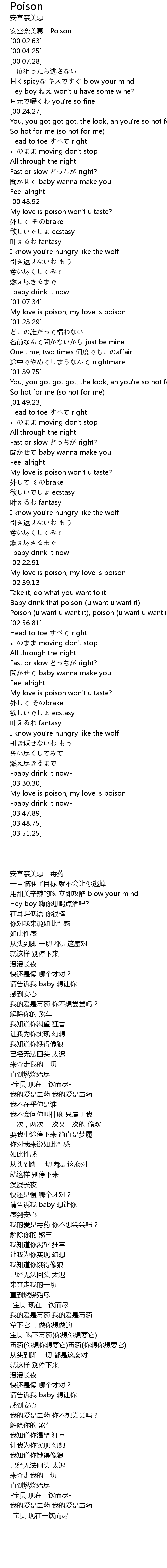 | [00:00.95] | 安室奈美恵 - Poison |