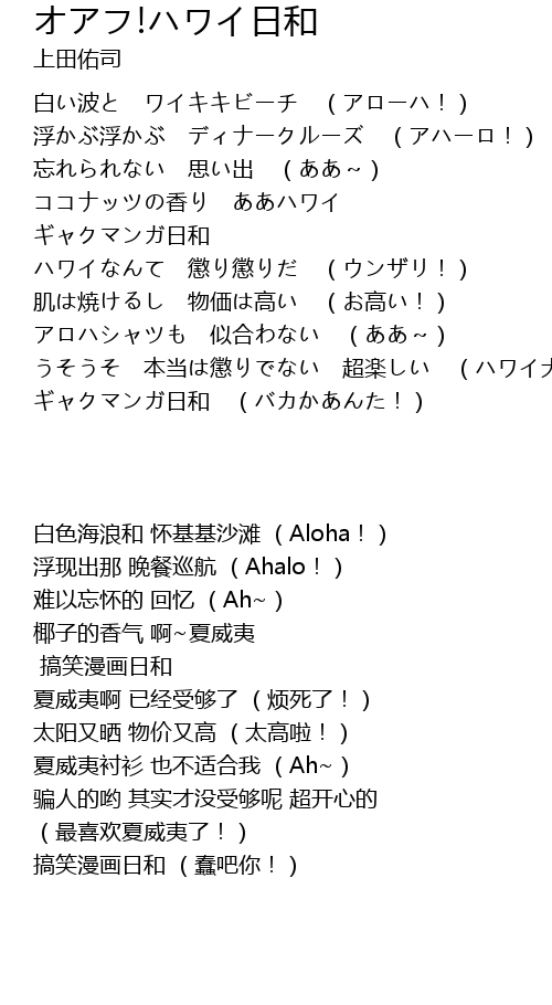 | [00:02.886] | 白い波と ワイキキビーチ (アローハ!) |
