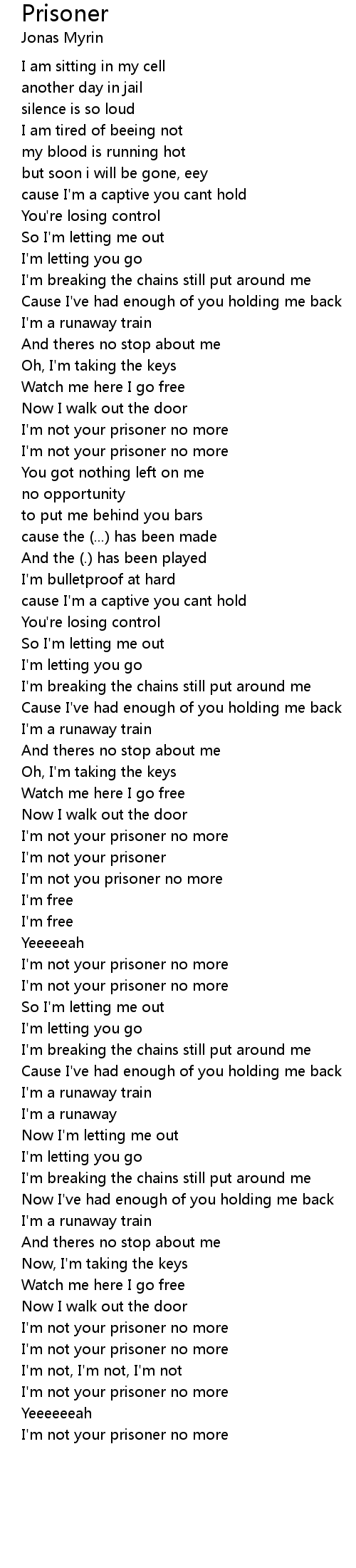 I'm not you prisoner no more |