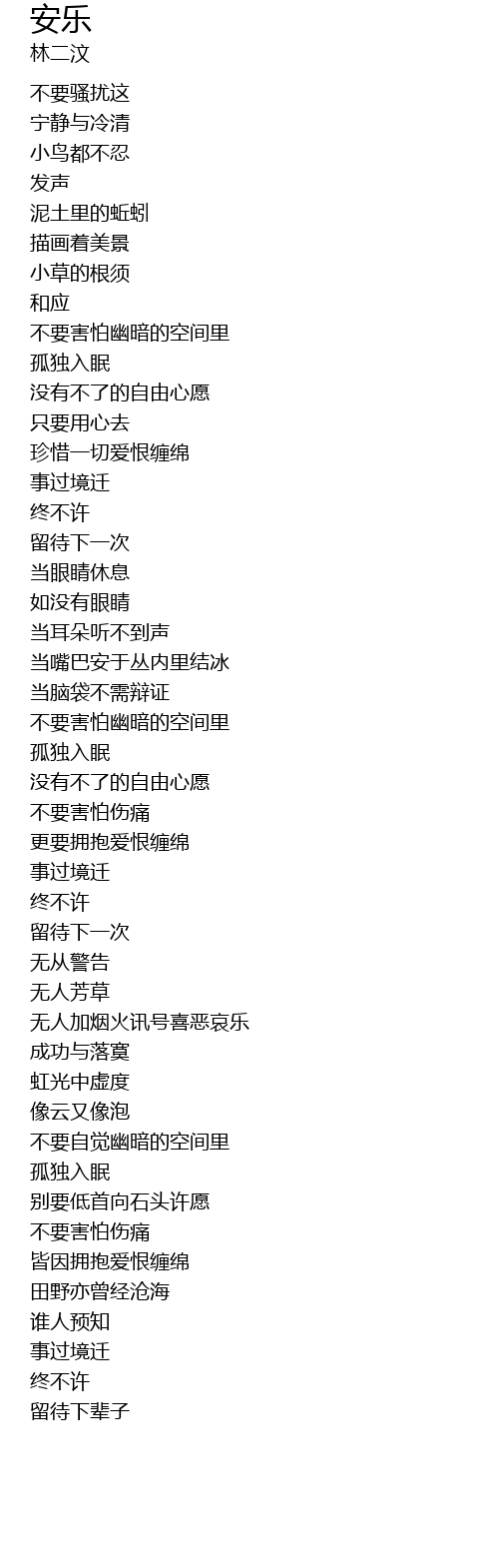 | 歌曲 | 安乐 |