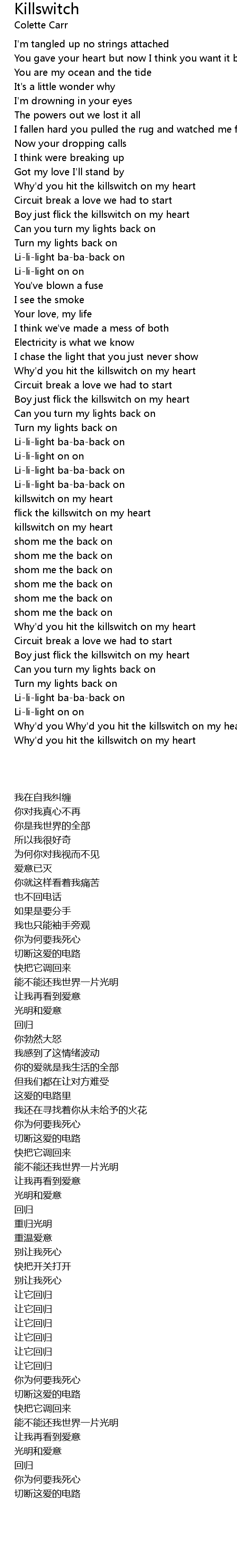Why'd you Why'd you hit the killswitch on my heartn |