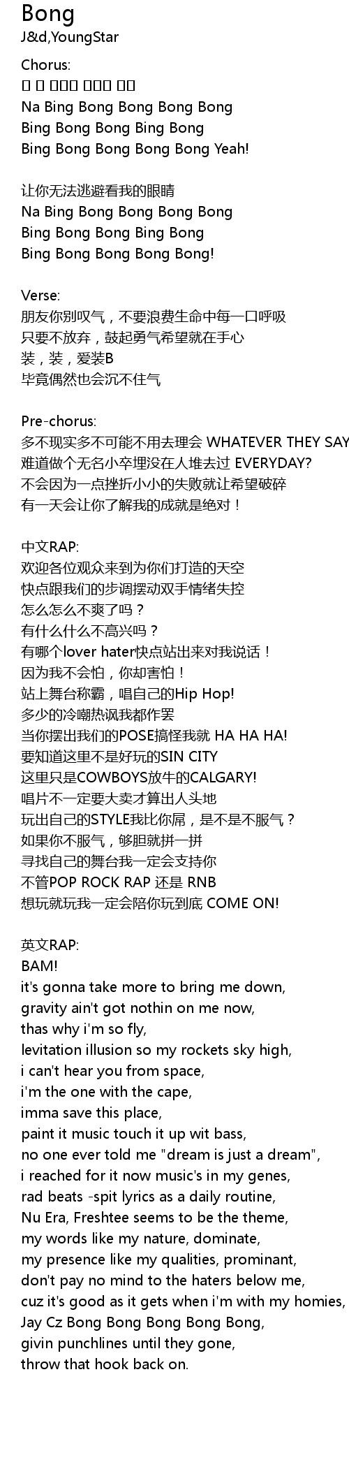 Bong 歌词