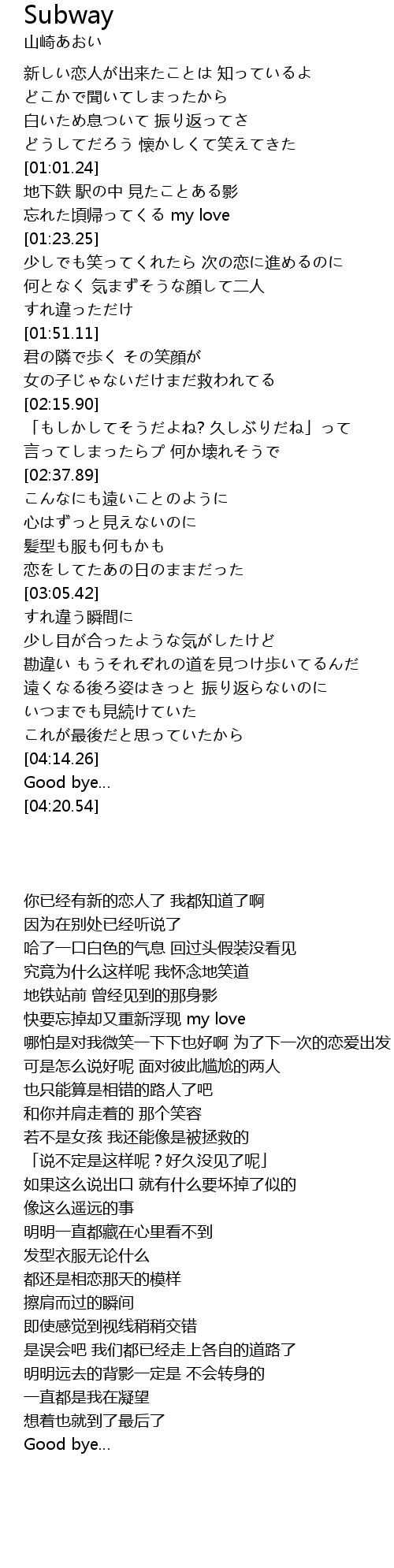 | [01:02.67] | 地下鉄 駅の中 見たことある影 |