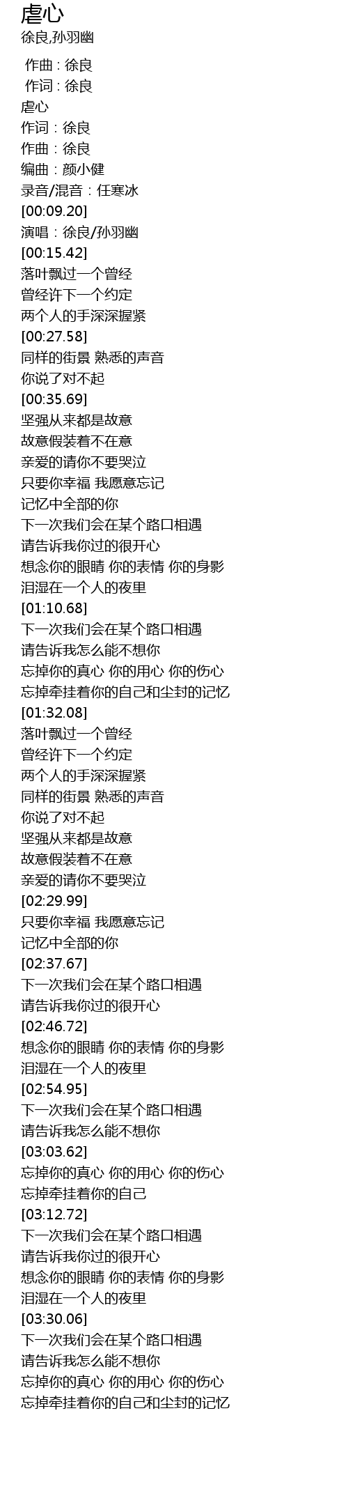 | [00:11.51] | 演唱:徐良/孙羽幽 |