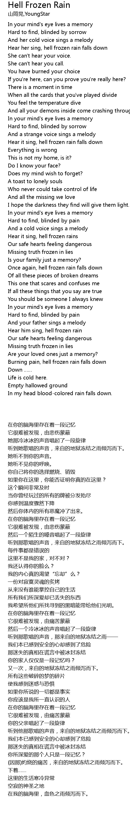 | [02:53.47] | Once again, hell frozen rain falls down |