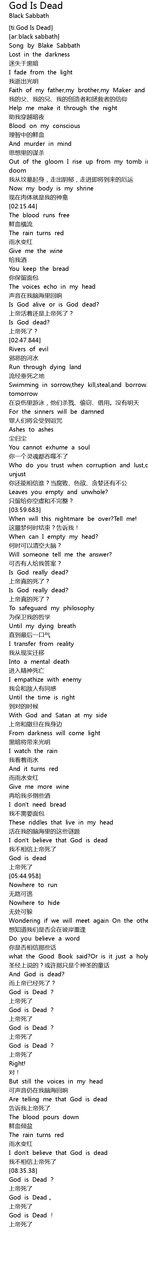 | [02:44.45] | Is God dead? |