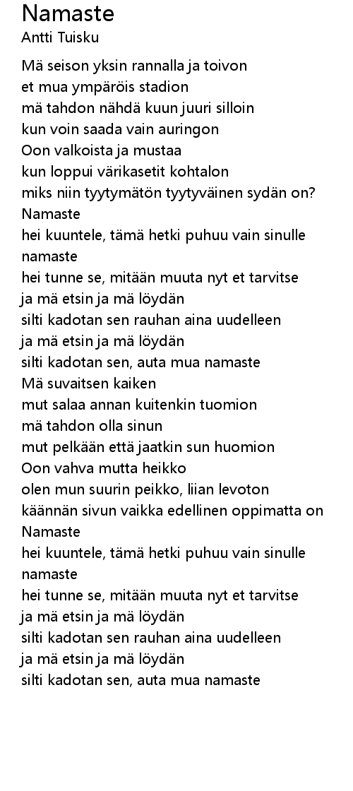 | [02:26.840] | silti kadotan sen, auta mua namaste |