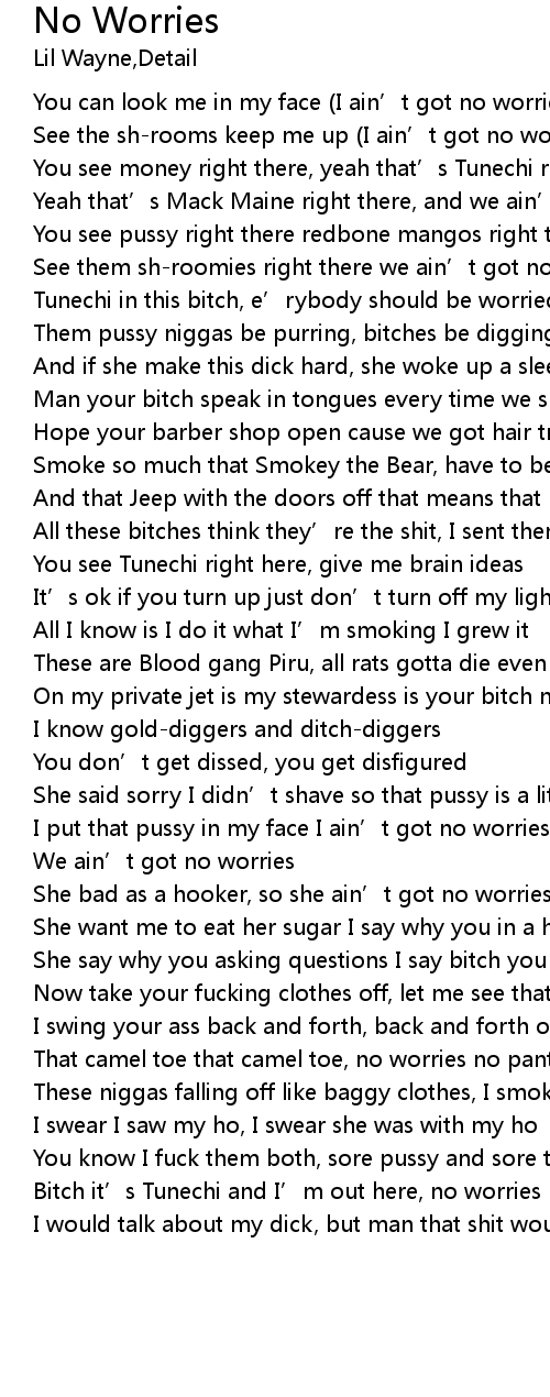 | I put that pussy in my face I ain’t got no worries | |