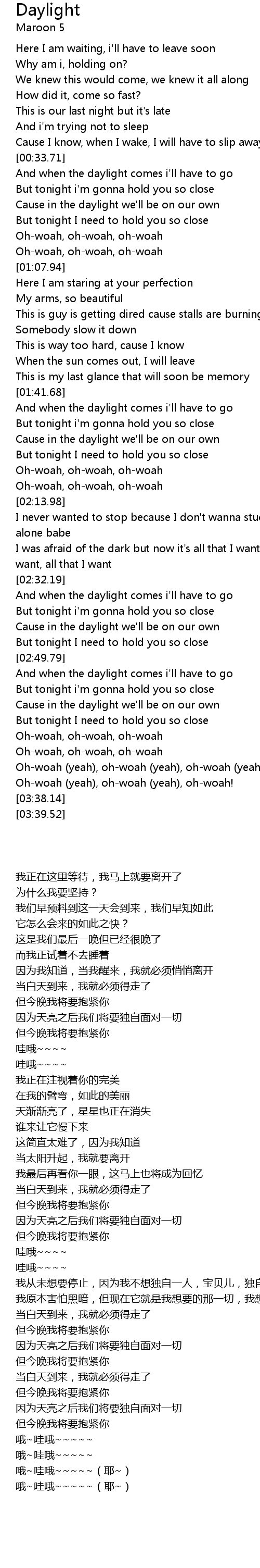 And when the daylight comes i'll have to go |