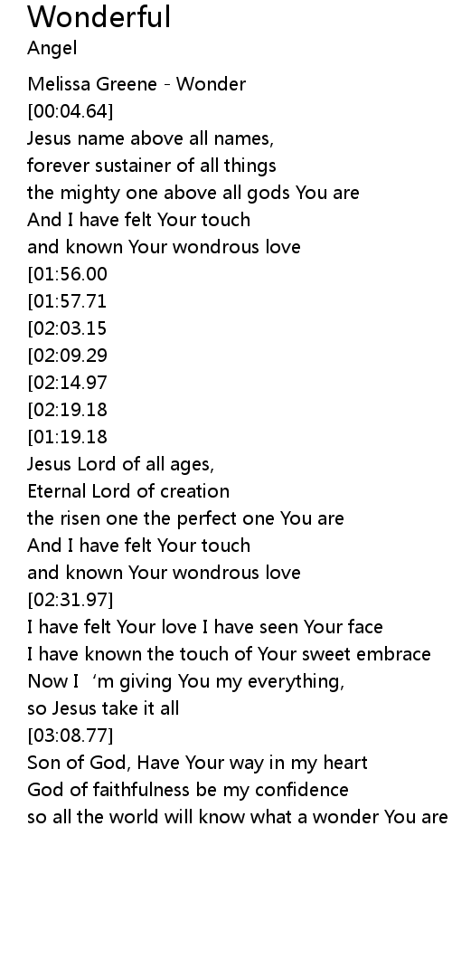 | [03:57.10][02:19.18][01:08.95] | what a wonder You are |