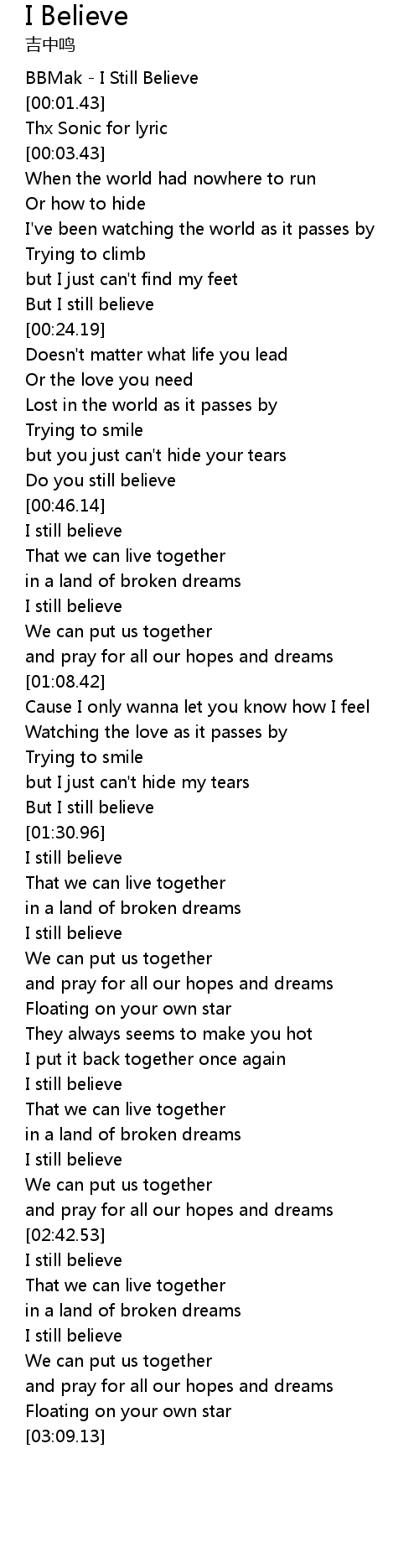 | [00:43.20] | Do you still believe |