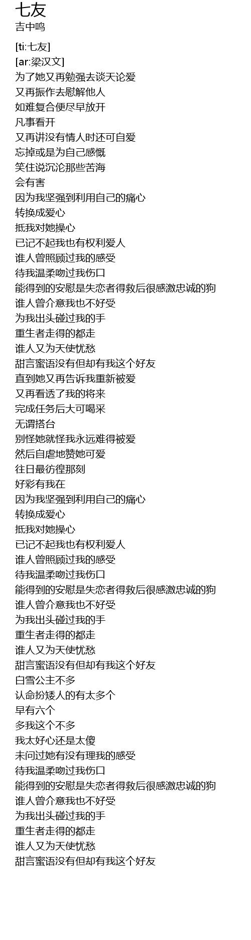| [01:36.700] | 甜言蜜语没有但却有我这个好友 |