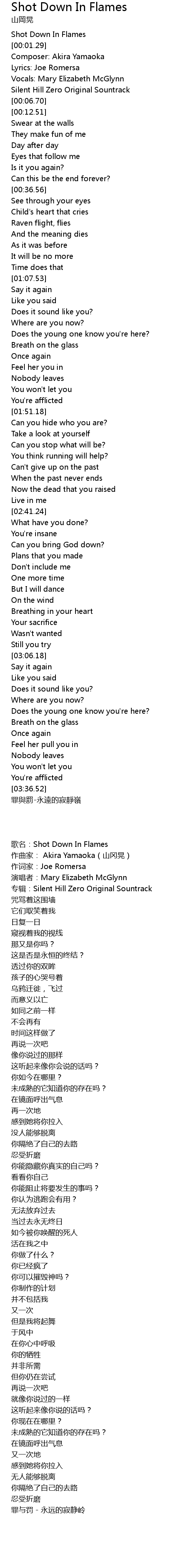 | [03:41.18] | 罪與罰-永遠的寂靜嶺 |