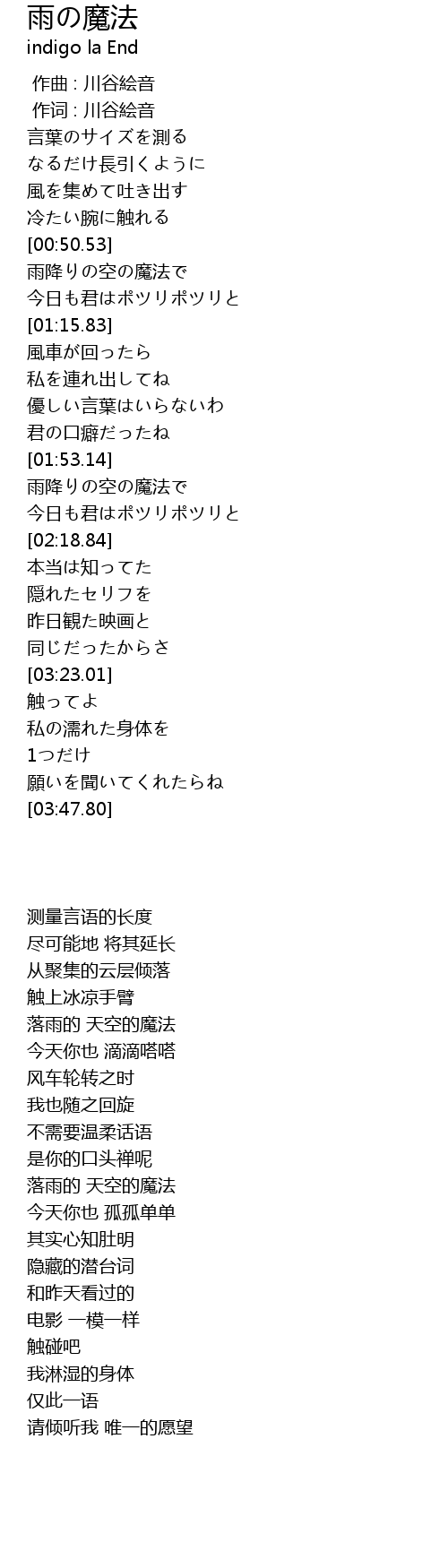 | [01:53.50] | 落雨的 天空的魔法 |