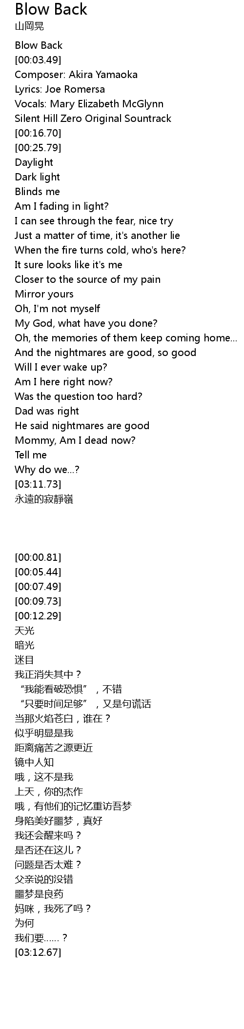 | [03:12.67] | 永遠的寂靜嶺 |