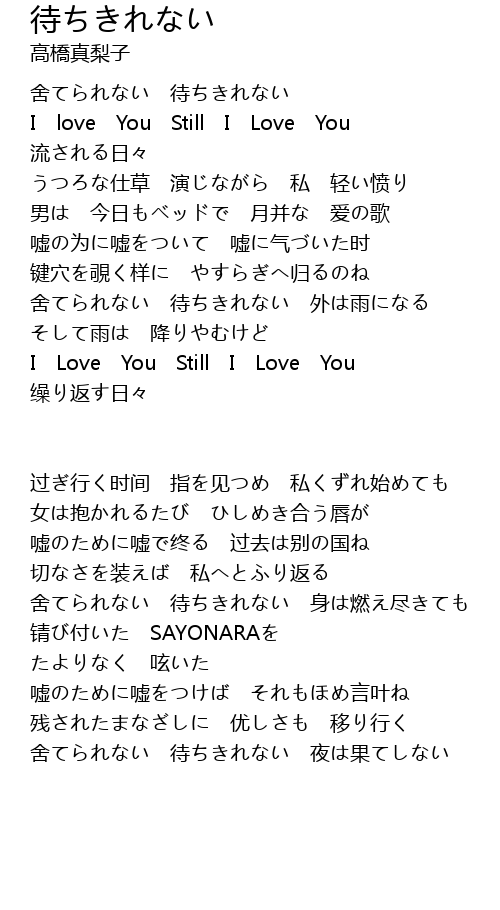 | 舍てられない 待ちきれない 身は燃え尽きても | |