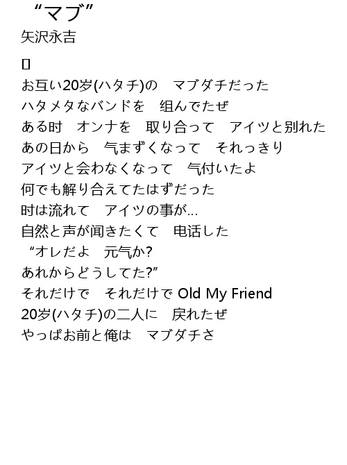 | 20岁(ハタチ)の二人に 戻れたぜ | |