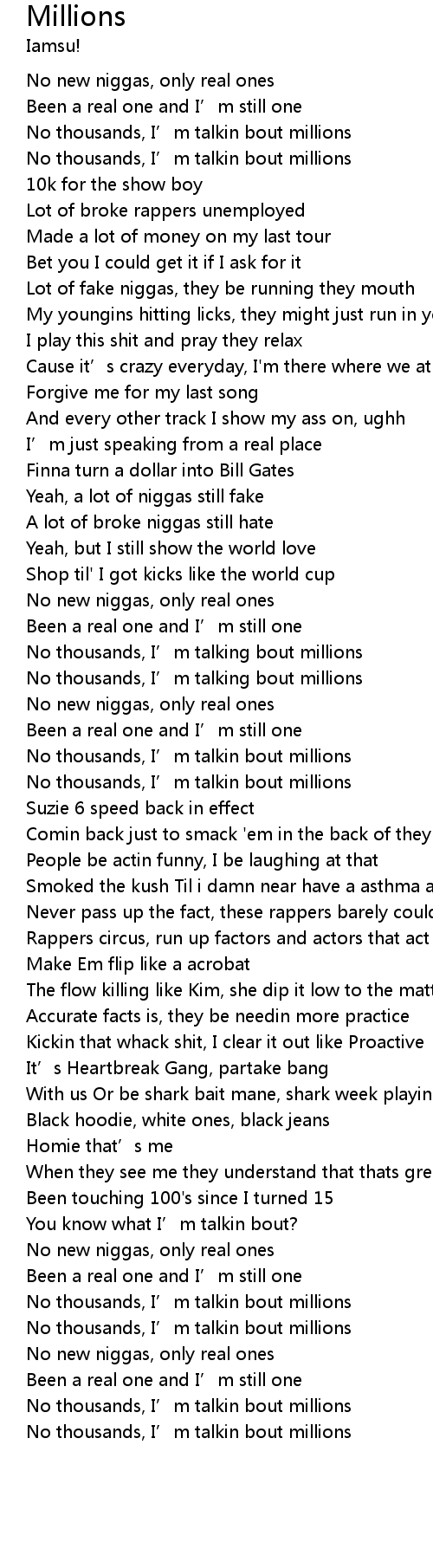 | [00:58.41] | No new niggas, only real ones |