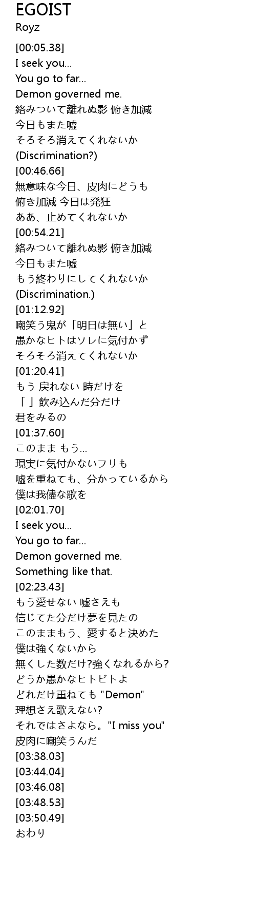 | [03:14.61] | どれだけ重ねても "Demon" |