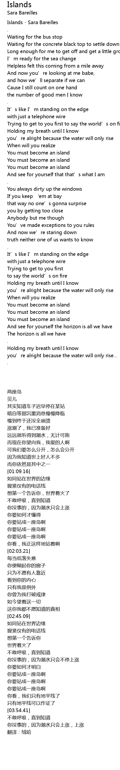 | [00:00.24] | Islands Sara Bareilles |