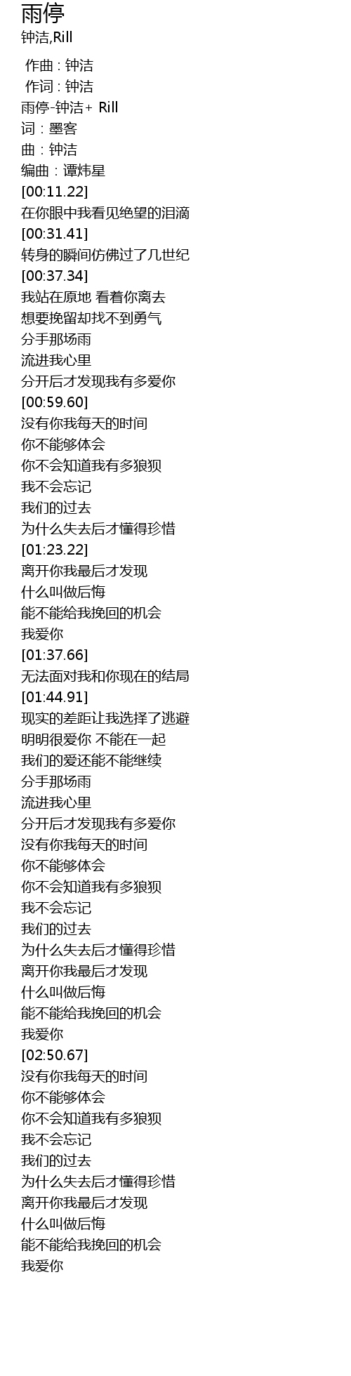 | [00:03.40] | 雨停-钟洁+ Rill |