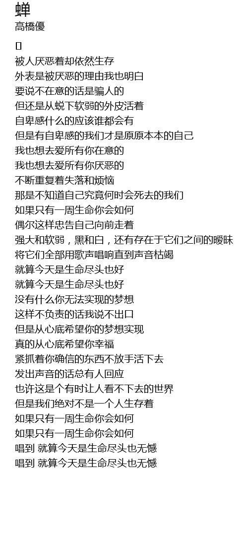 | [03:00.218] | 唱到 就算今天是生命尽头也无憾 |