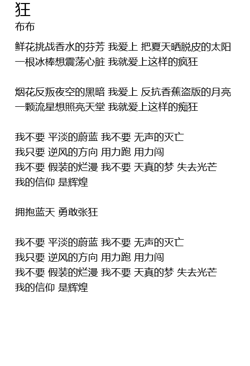 | 我不要 假装的烂漫 我不要 天真的梦 失去光芒 | |