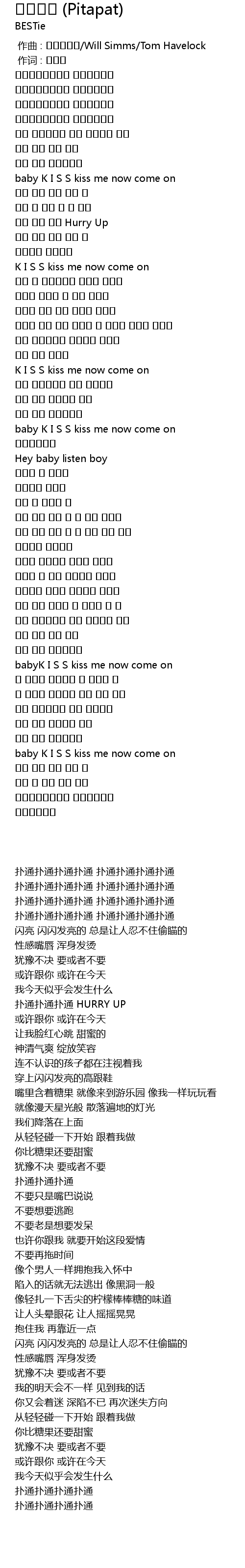 | [02:53.300] | baby K I S S kiss me now come on |