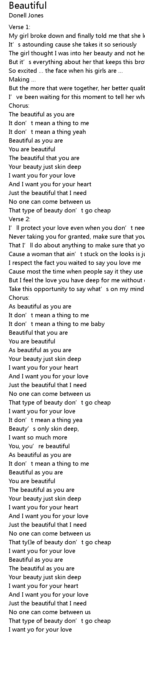 | Beautiful as you are | |