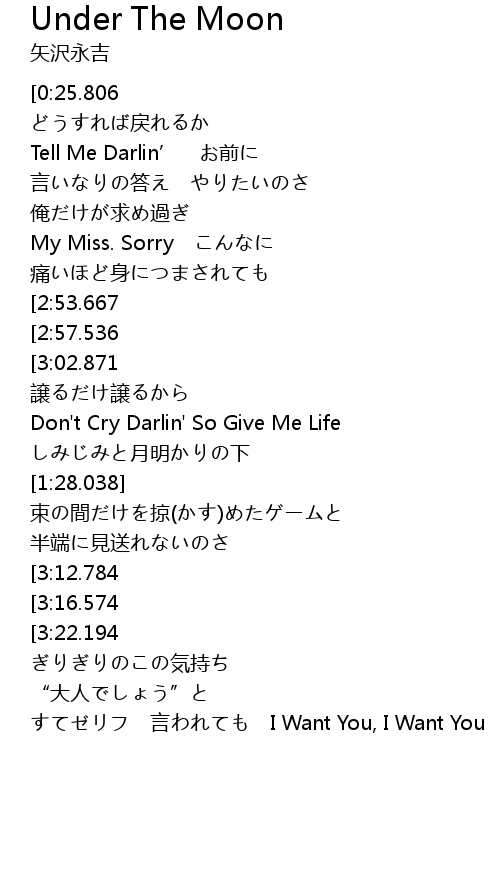 | [2:05.336][3:22.194] | I Wanna Chance もういちど お前と |