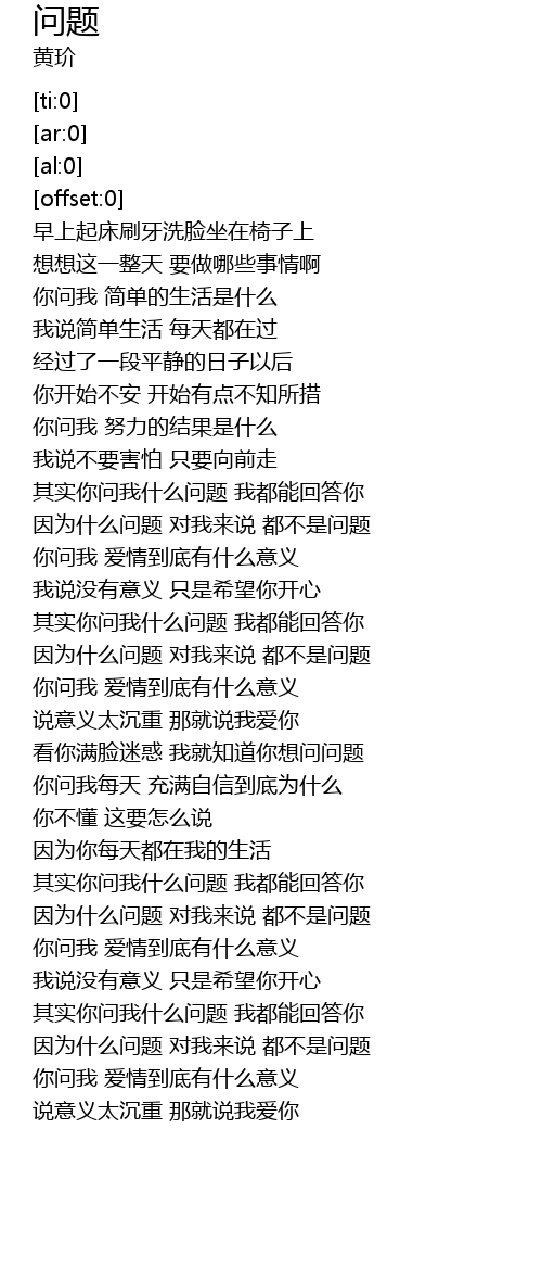 | [01:32.91] | yin wei shi me wen ti dui wo lai shuo dou bu shi wen ti |