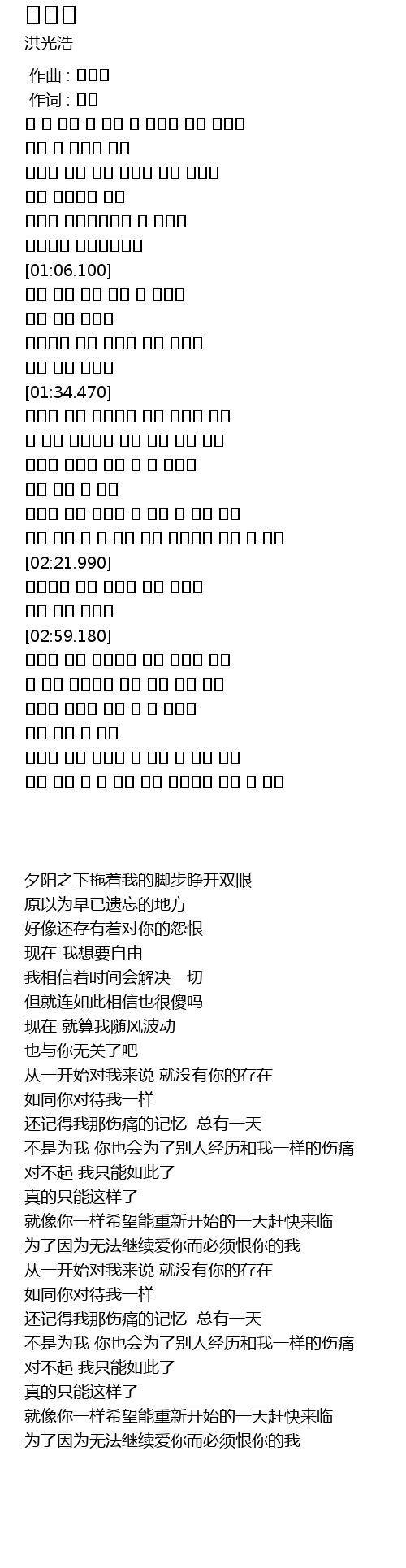 | [00:21.890] | 夕阳之下拖着我的脚步睁开双眼 |