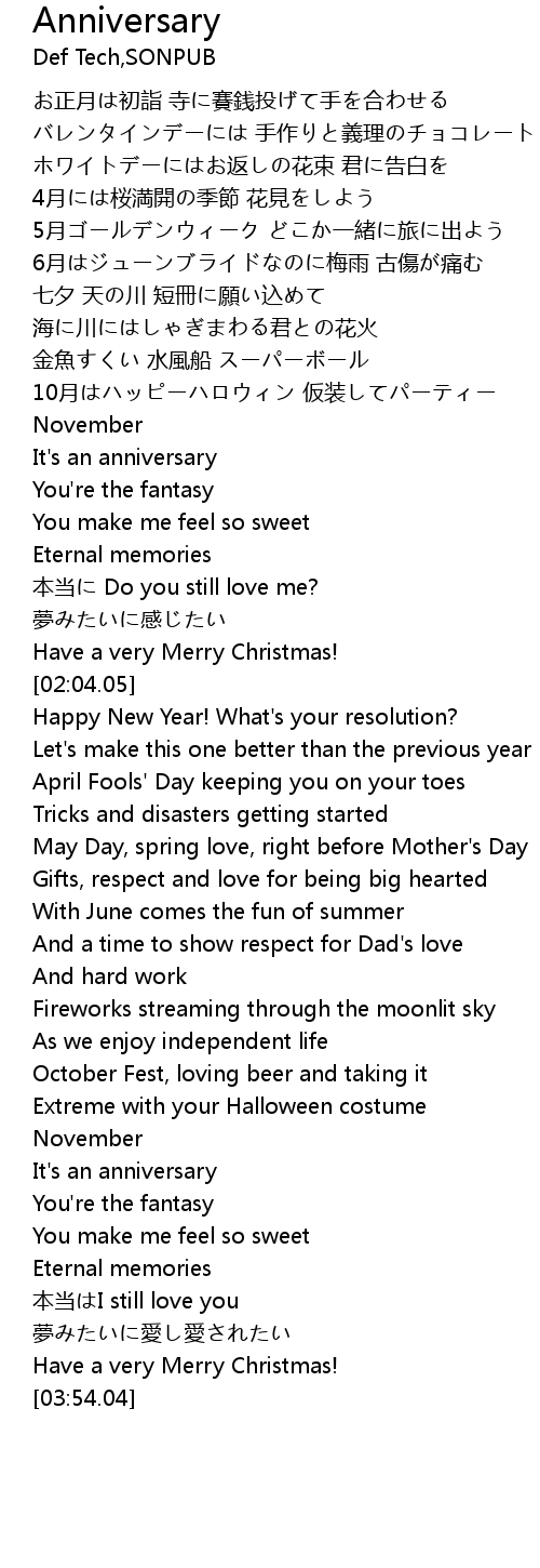 | [03:12.80] | It's an anniversary |