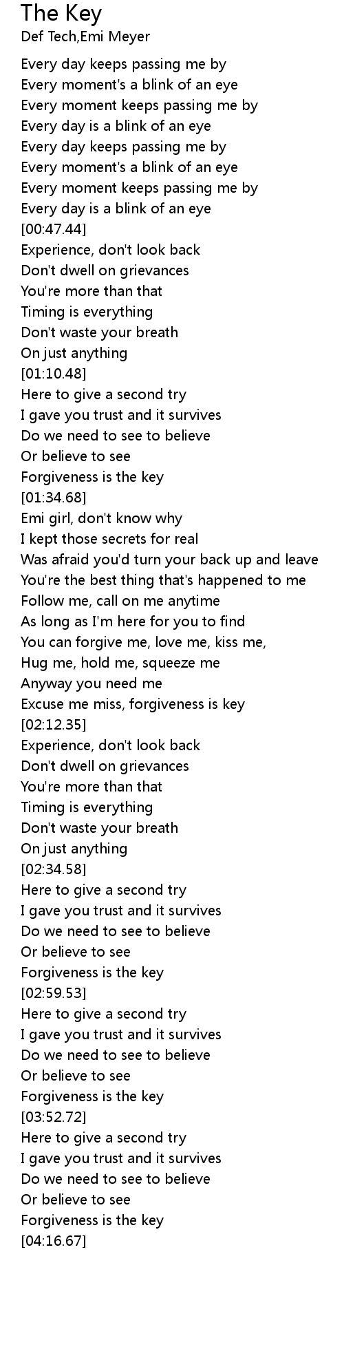 | [03:47.70] | Forgiveness is the key |