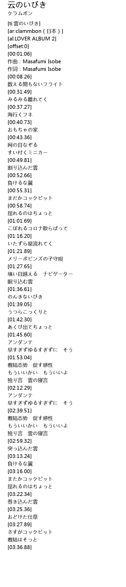 | [00:04.77] | zuo qu: Masafumi Isobe |