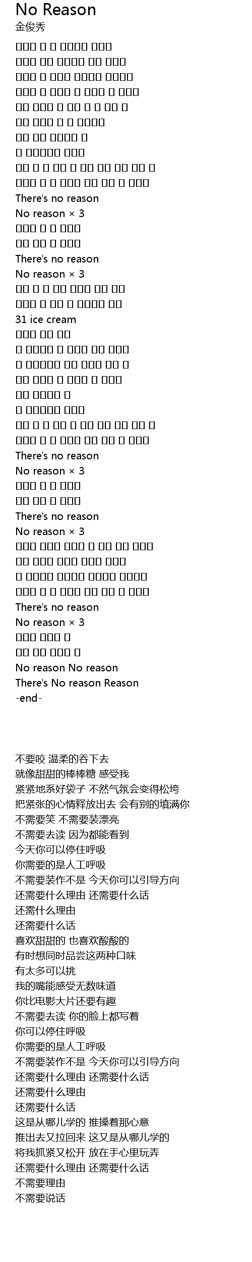 | 歌曲 | No Reason |