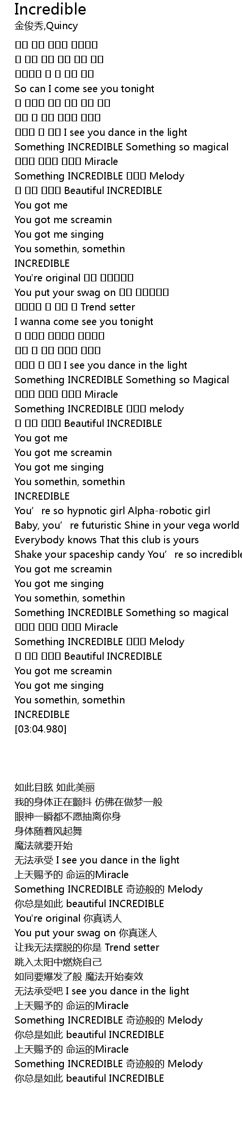| [00:37.35] | Something INCREDIBLE 奇迹般的 Melody |
