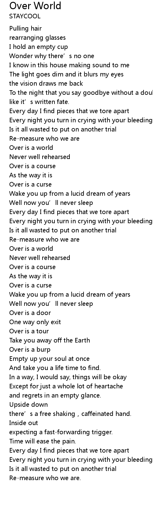 | [00:41.090] | The light goes dim and it blurs my eyes |