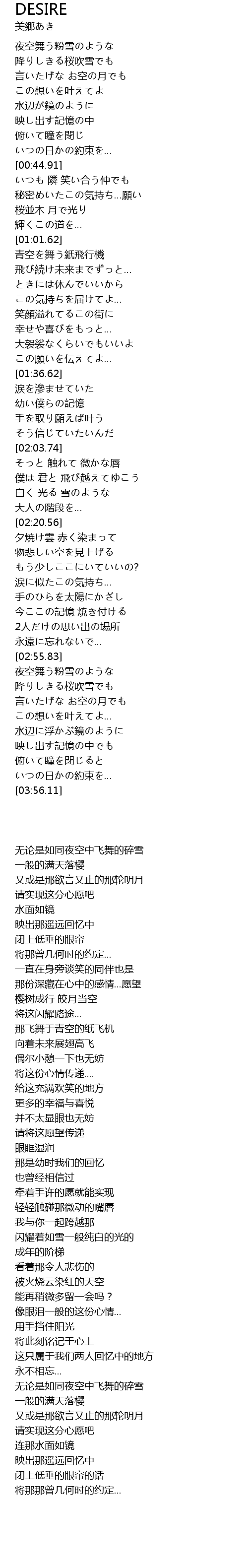 | [00:49.43] | 那份深藏在心中的感情...愿望 |