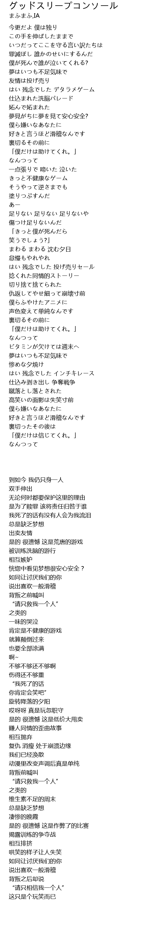 | [02:04.56] | 仇返してやせ細って崩壊寸前 |