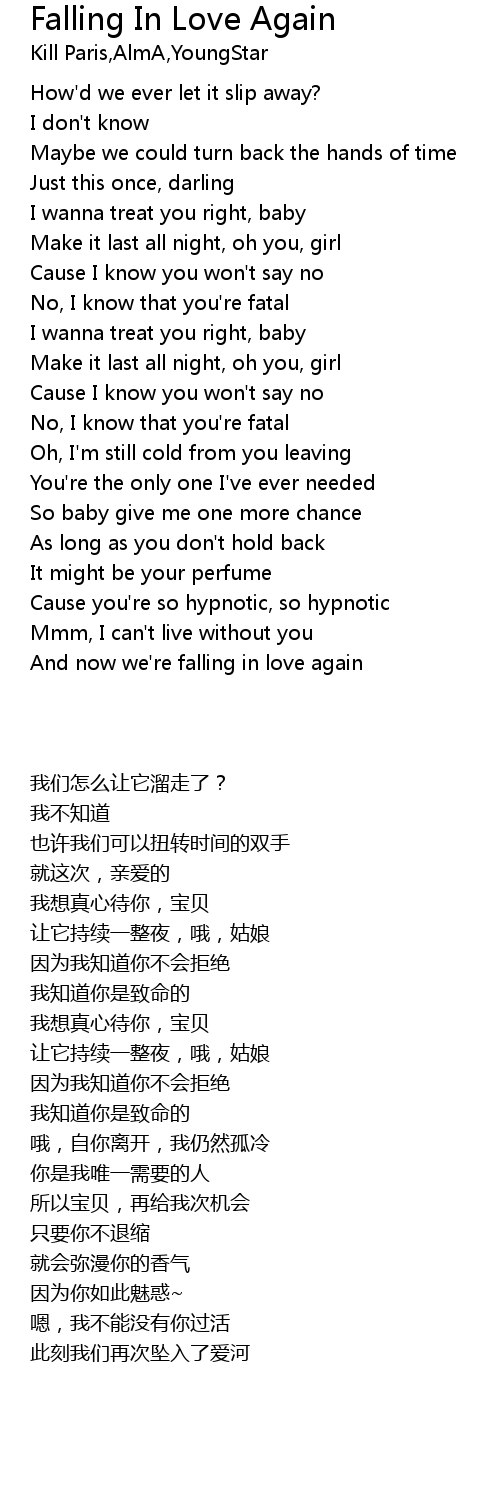 And now we're falling in love again |