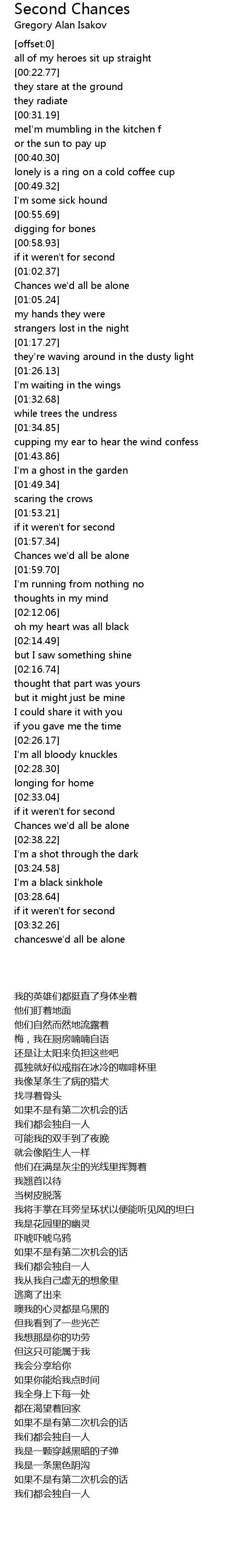 [02:36.91] Chances we'd all be alone