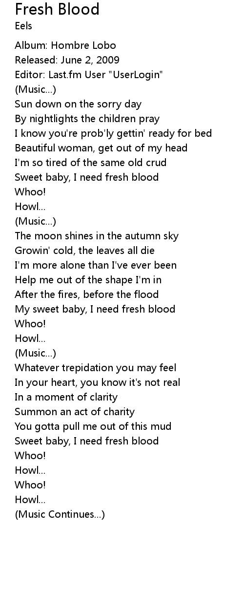 Sweet baby, I need fresh blood |