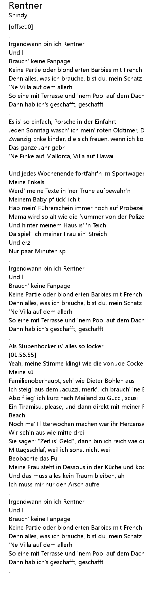 [00:50.77] ' Ne Finke auf Mallorca, Villa auf Hawaii