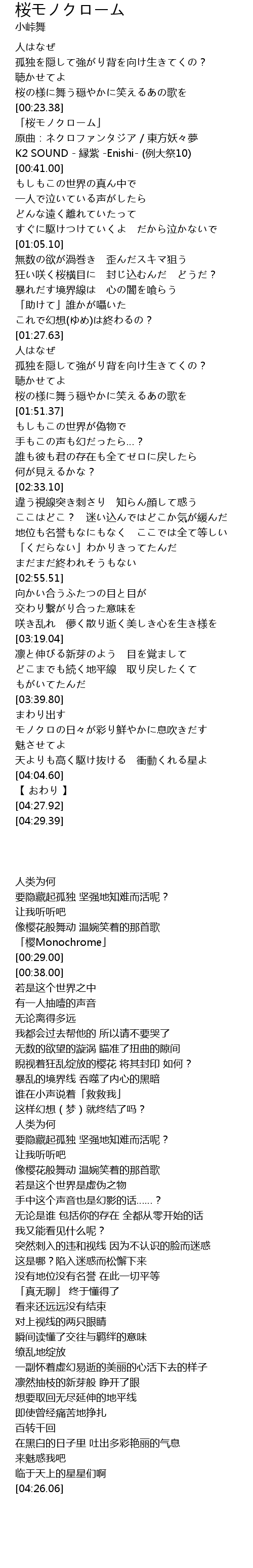 | [00:26.00] | 「樱Monochrome」 |