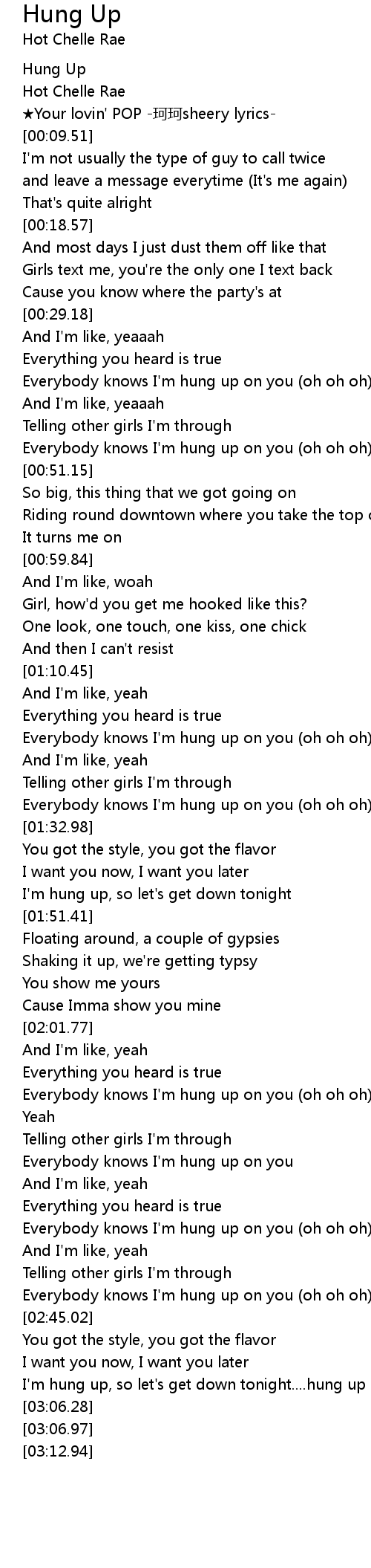 | [03:00.60] | I'm hung up, so let's get down tonight....hung up on you! |