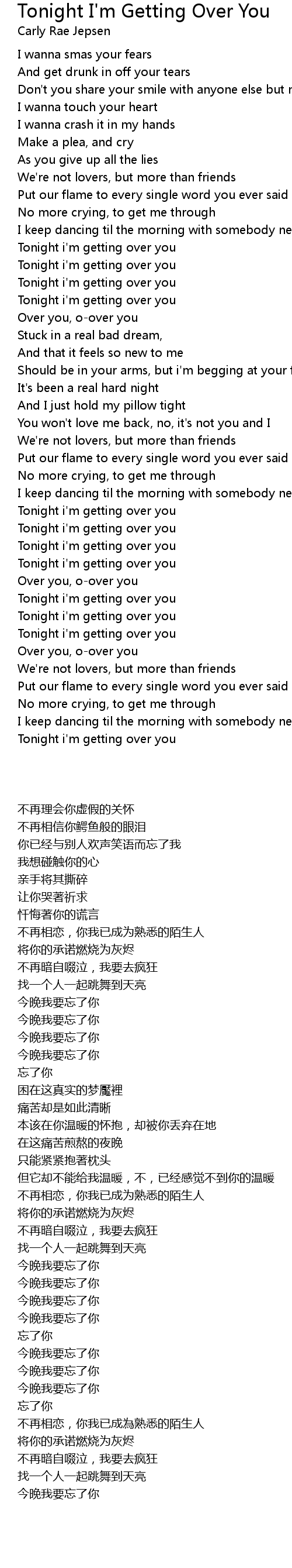 Tonight i'm getting over you |