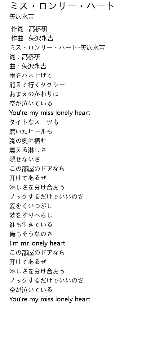 | [00:00.100] | ミス・ロンリー・ハート-矢沢永吉 |